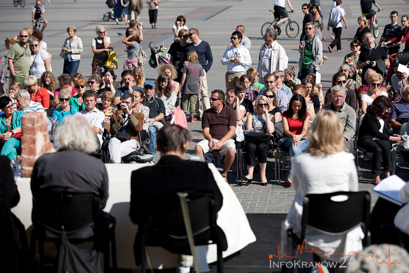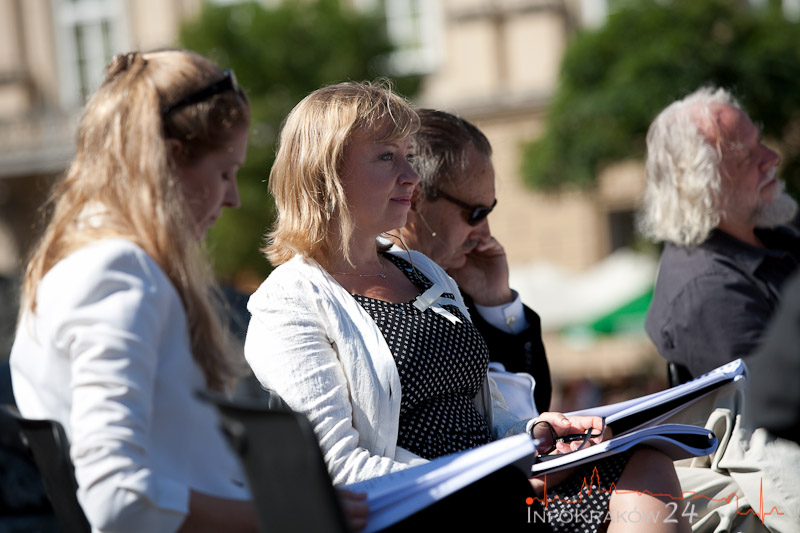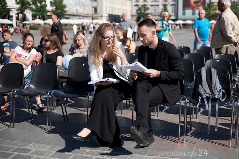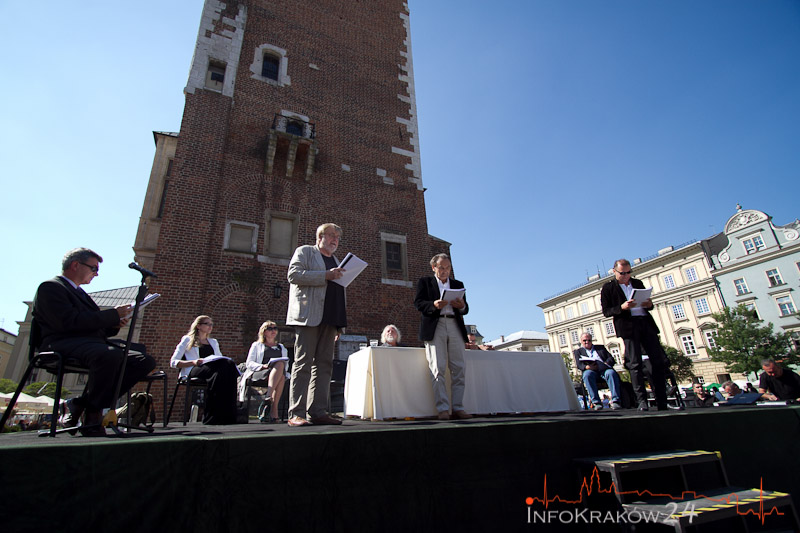 Najważniejszym punktem krakowskiej odsłony przedsięwzięcia będzie (organizowane przez Teatr Groteska) plenerowe czytanie ?Zemsty” na Rynku Głównym, od strony Wieży Ratuszowej (7 września,b sobota, od godz. 11.00),w którym wezmą udział znani aktorzy: Anna Dymna, Urszula Grabowska, Dorota Segda, Tadeusz Malak, Krzysztof Orzechowski i Jacek Romanowski, a także Przewodniczący Komisji Kultury i Ochrony Zabytków Rady Miasta Krakowa Jerzy Fedorowicz. Tego samego dnia, innej sztuki Fredry ? ?Mąż i żona” ? będzie też można posłuchać w Teatrze Bagatela (Duża Scena, ul. Karmelicka 6, godz. 19:15, WSTĘP WOLNY).