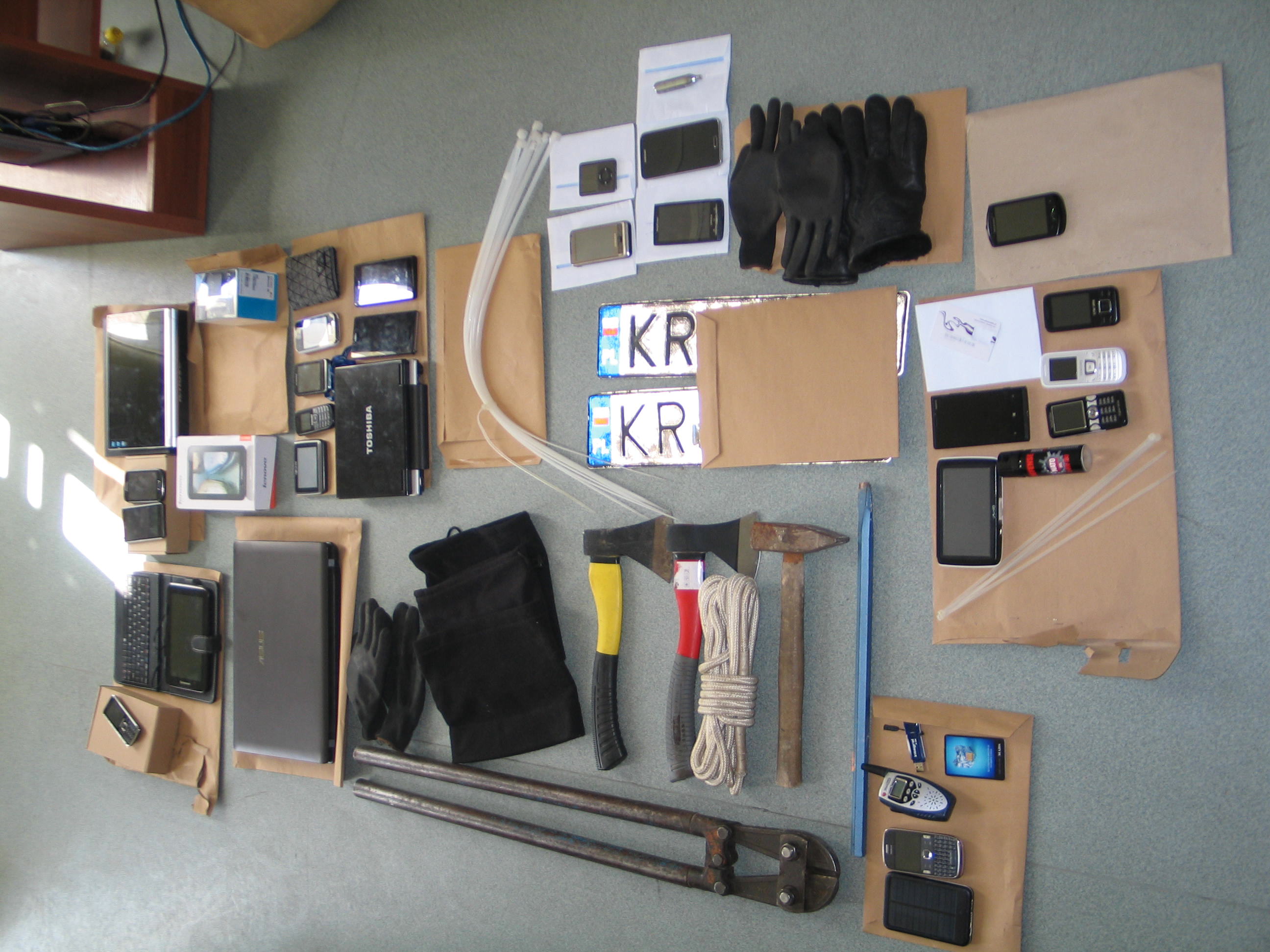 Starannie przygotowane realizacje zatrzymania przestępców nastąpiły późnym wieczorem, gdy złodzieje byli pochłonięci sortowanie zdobytych łupów. Policjanci weszli do trzech mieszkań jednocześnie. W rezultacie śledczy zatrzymali trzech mężczyzn w wieku od 22 do 28 lat oraz zabezpieczyli część skradzionych przedmiotów, atrapy broni palnej, noże, siekiery, telefony komórkowe i laptopy.