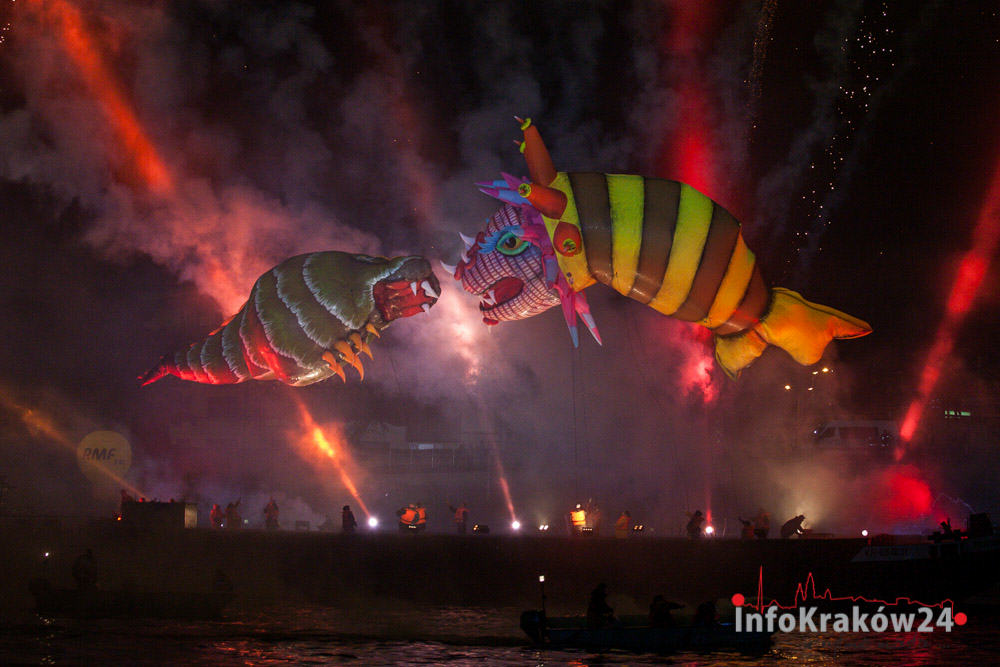 Ukoronowaniem pierwszego dnia smoczego święta było, zapierające dech w piersiach, Wielkie Widowisko Plenerowe na Wiśle, podczas którego gigantyczne, unoszące się w powietrzu smoki zatańczyły przy muzyce, sztucznych ogniach i laserach. Podczas widowiska zaprezentowały się niesamowite stwory pływające i latające (do 25 m długości i 15m wysokości) umieszczone na barkach i statkach animowane przez aktorów Teatru Groteska.