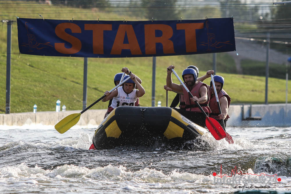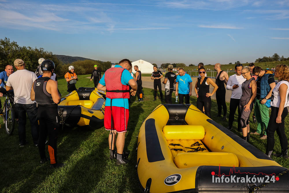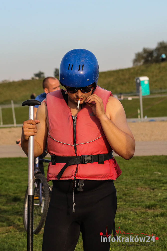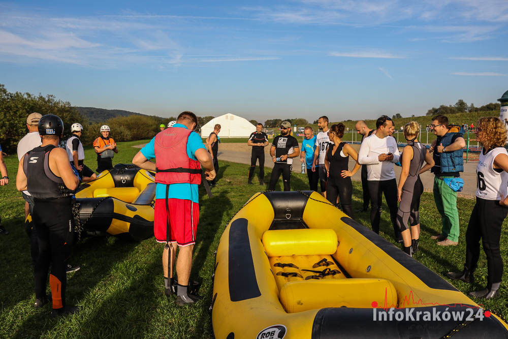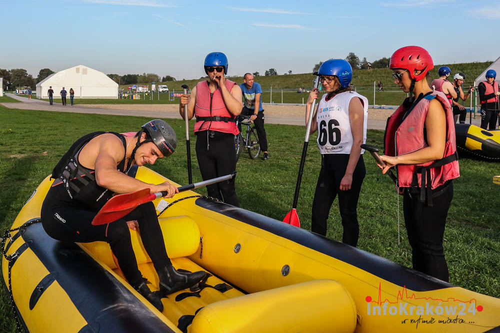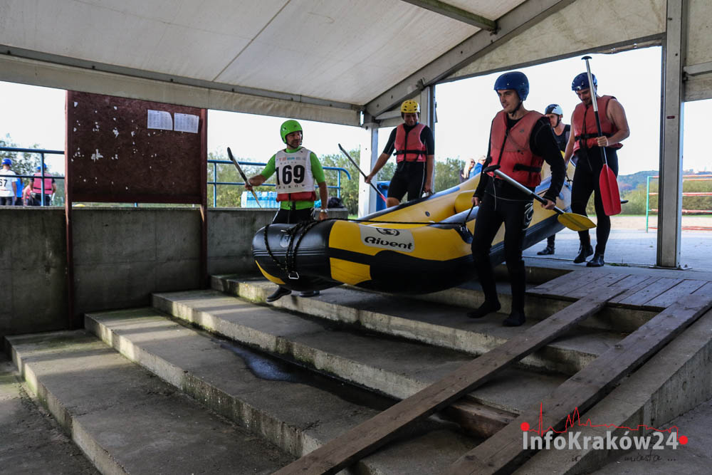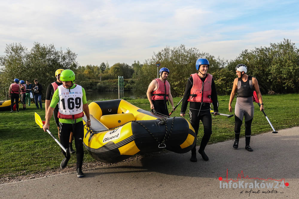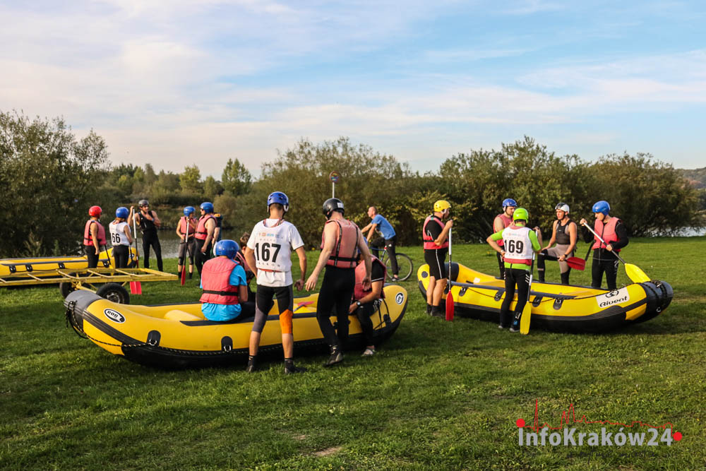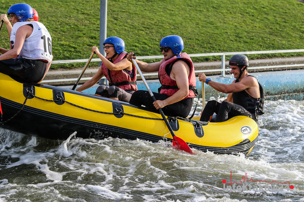 Czteroosobowe ekipy ze sternikiem / doświadczony kajakarz z Krakowskiego Kluby Kajakowego/ miały do pokonania prawie 300 metrowej długości spieniony przez wodę tor. Zadanie było proste jak najszybciej dotrzeć do mety. Do zwycięstwa liczył się najlepszy czas z dwóch spływów. Emocji było sporo, dopisali: pogoda i kibice. Widowiskowa była także przewrotka jednej z drużyn. W ferworze walki zawodnicy wpadli do wody i do brzegu musieli dopłynąć wpław.