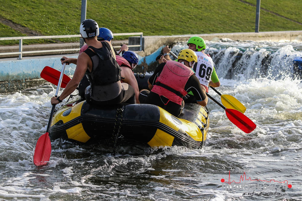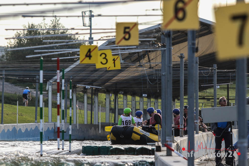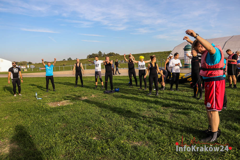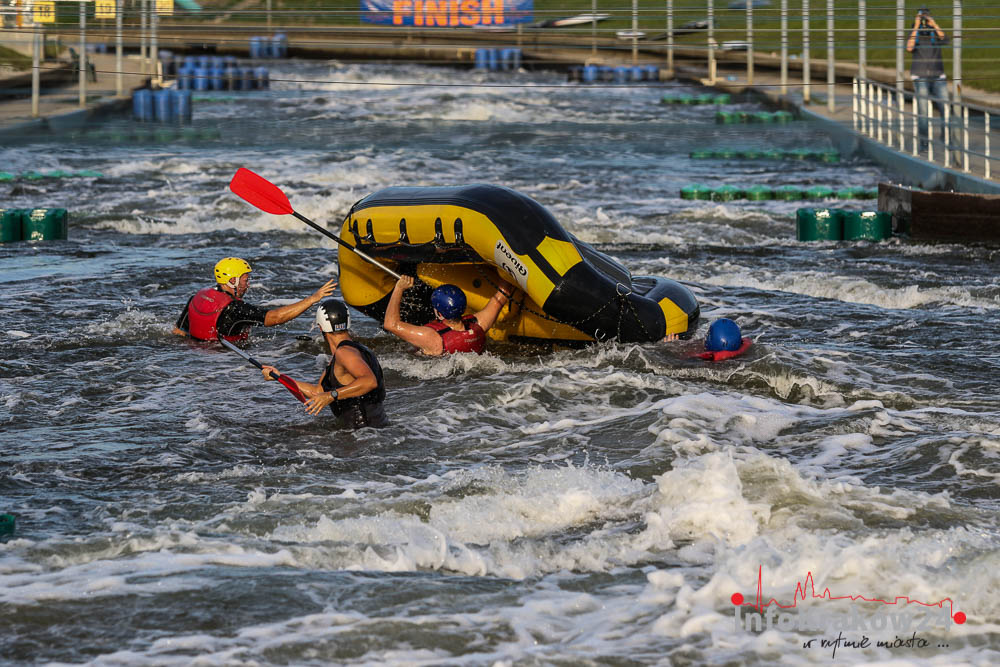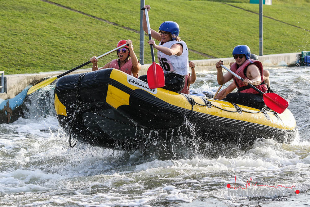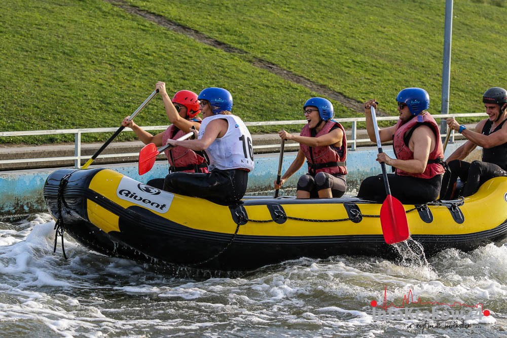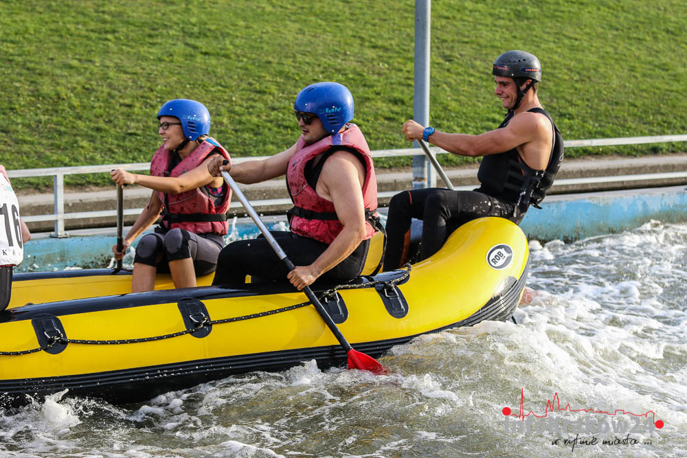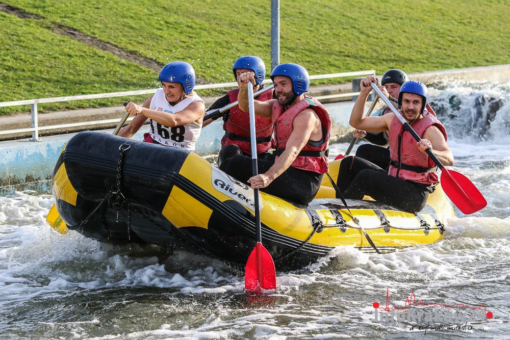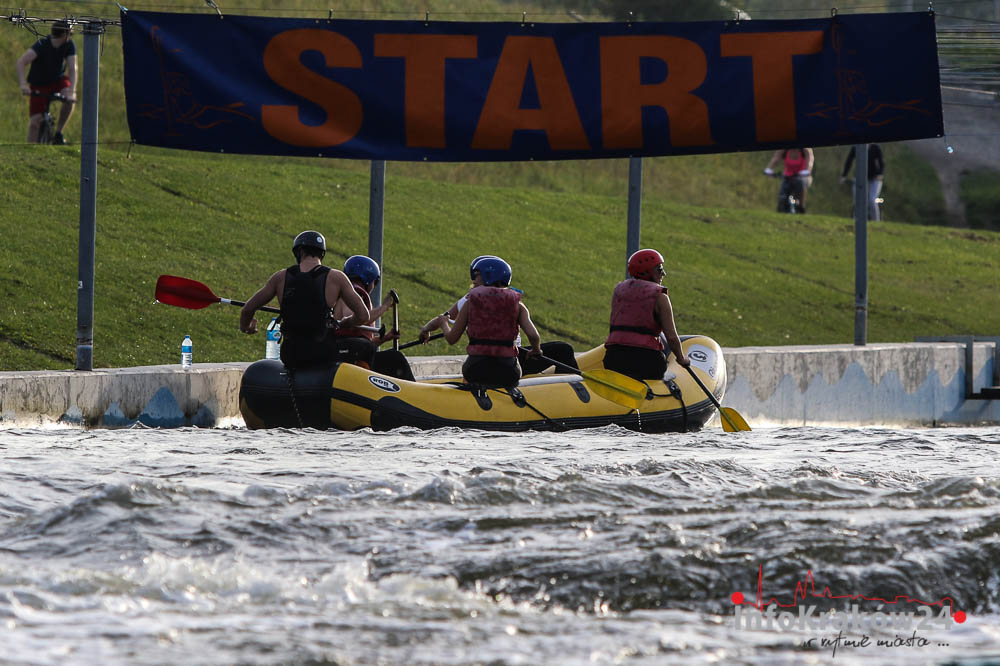 Czteroosobowe ekipy ze sternikiem / doświadczony kajakarz z Krakowskiego Kluby Kajakowego/ miały do pokonania prawie 300 metrowej długości spieniony przez wodę tor. Zadanie było proste jak najszybciej dotrzeć do mety. Do zwycięstwa liczył się najlepszy czas z dwóch spływów. Emocji było sporo, dopisali: pogoda i kibice. Widowiskowa była także przewrotka jednej z drużyn. W ferworze walki zawodnicy wpadli do wody i do brzegu musieli dopłynąć wpław.