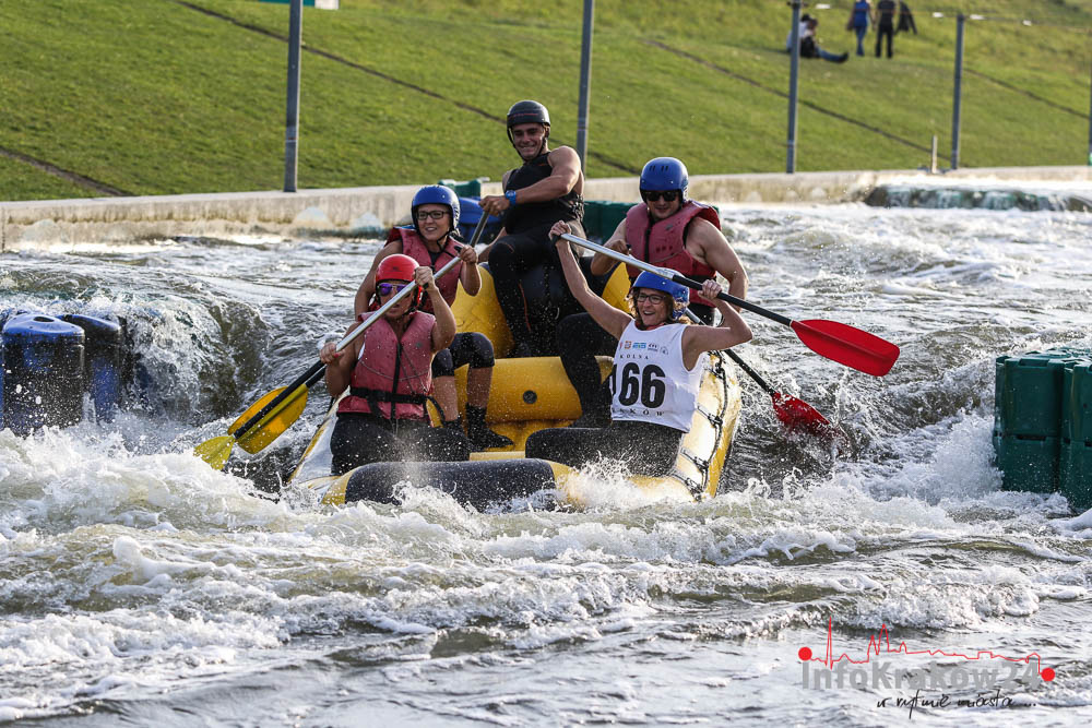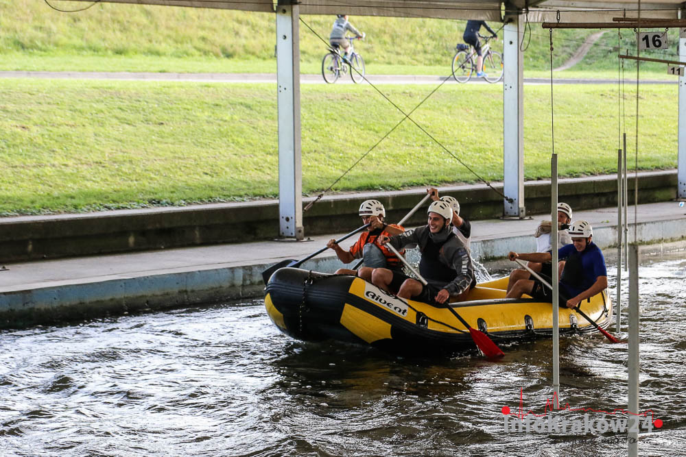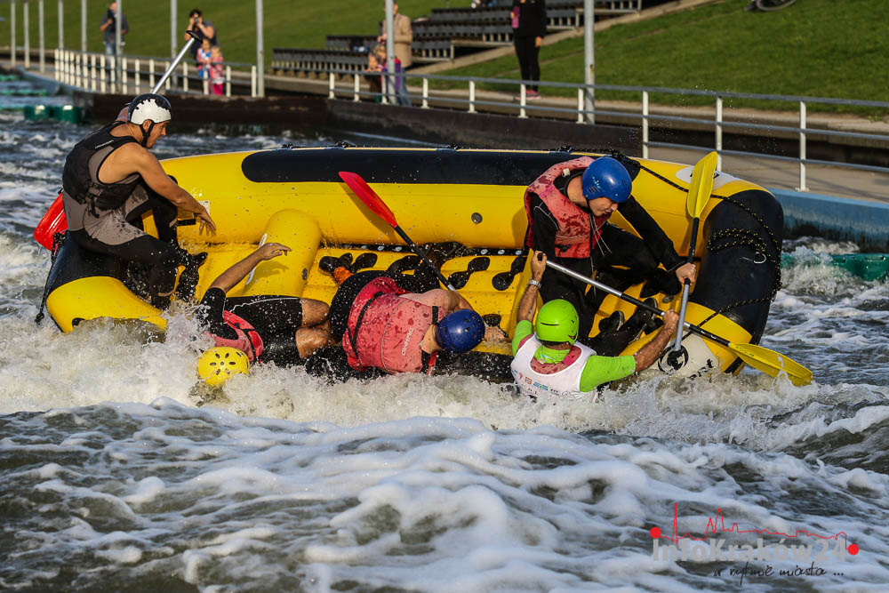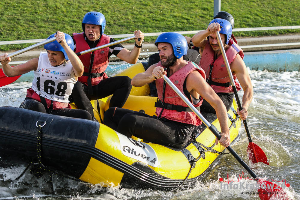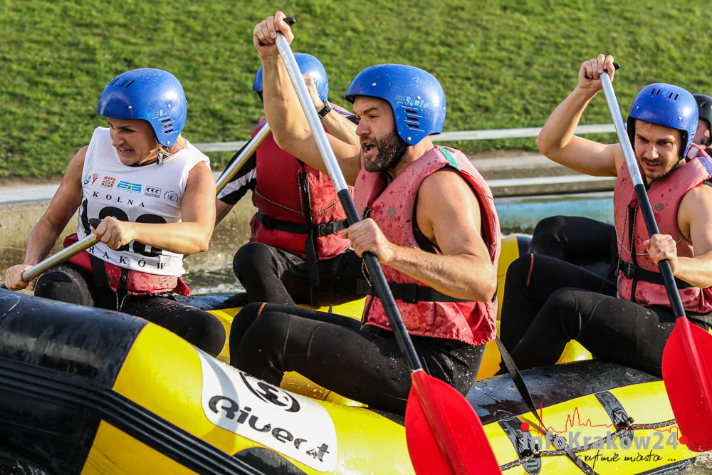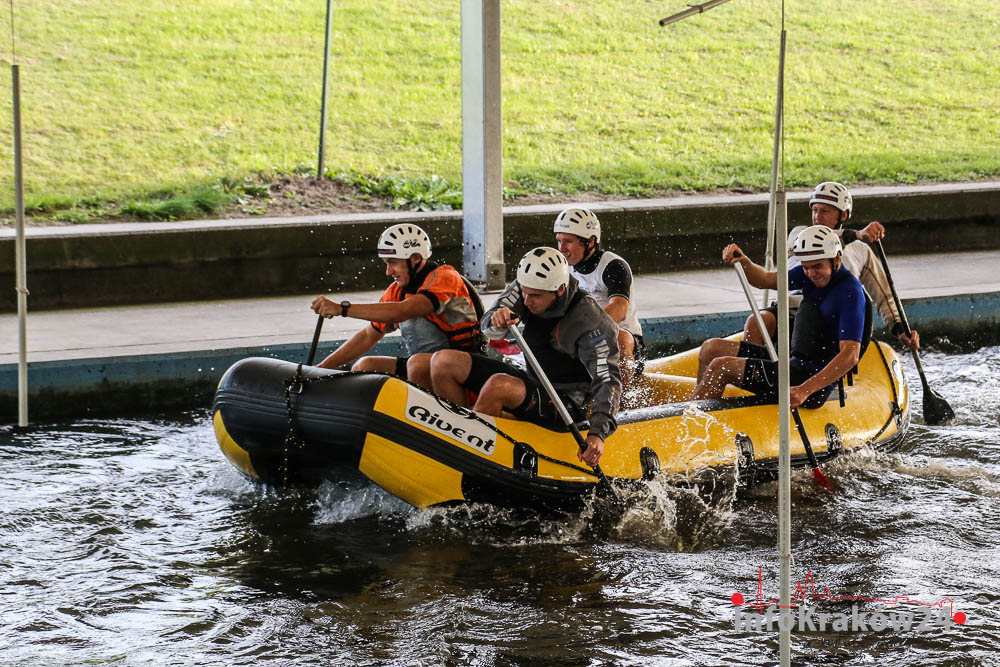 Drużyna TVN Kraków najszybsza na kajakowym torze na Kolnej. Dziennikarze i operatorzy telewizyjni wygrali zawody raftingowe na pontonach. Po zaciętej walce na podium stanęły także ekipy Zarządu Infrastruktury Sportowej i Wydziału Sportu UMK. Na kajakarskim torze doskonale poradziły sobie również drużyny Urzędu Miasta Krakowa i połączone siły Polsatu i Gazety Wyborczej.