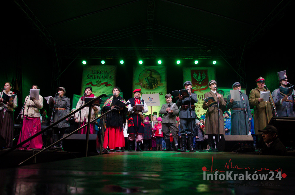 11 listopada na Rynku Głównym w Krakowie odbyła się 58. Lekcja Śpiewania. Tradycyjnie Artyści z kabaretu Loch Camelot pod przewodnictwem Ewy Korneckiej, wspólnie ze zgromadzoną na Rynku publicznością zaśpiewali najpiękniejsze polskie pieśni i piosenki. Koncert poprowadzili Dyrektor Biblioteki Polskiej Piosenki Waldemar Domański oraz Kazimierz Madej Dyrektor kabaretu Loch Camelot. Na tę szczególną okazję Kancelaria Prezydenta Miasta Krakowa przygotowała 5000 bezpłatnych śpiewników. Koncert tradycyjnie otrzymał honorowy patronat profesora Jacka Majchrowskiego.[wegallery id=”67216″ type=”grid” col=”3″ caption=”no” link=”file”]