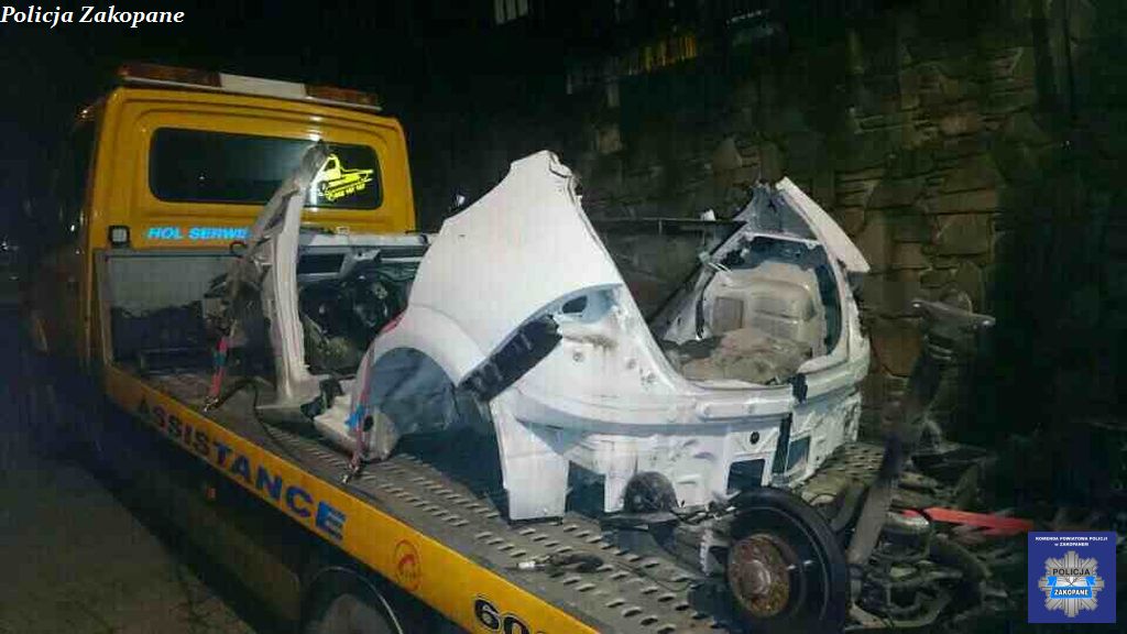 W piątek przed południem zakopiańscy policjanci w centrum miasta podjęli kontrolę furgonetki, którą poruszały się znane im osoby. Podczas legitymowania mężczyźni zachowywali się agresywnie wobec podejmujących czynności policjantów. Dodatkowe patrole policyjne ostudziły temperament legitymowanych mężczyzn. Bardzo szybko okazało się co było powodem takiego zachowania. W ładowni furgonetki znajdowały się pocięte karoserie samochodów. Mężczyźni zostali zatrzymani do wyjaśnienia.