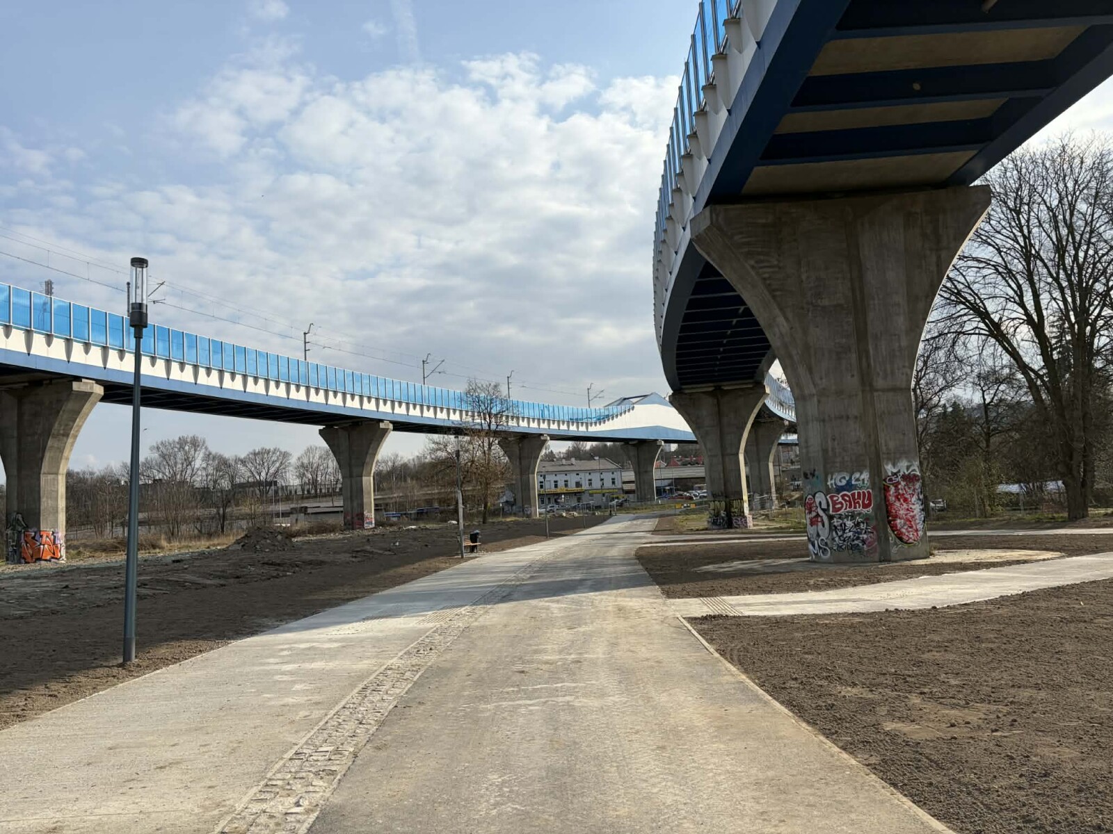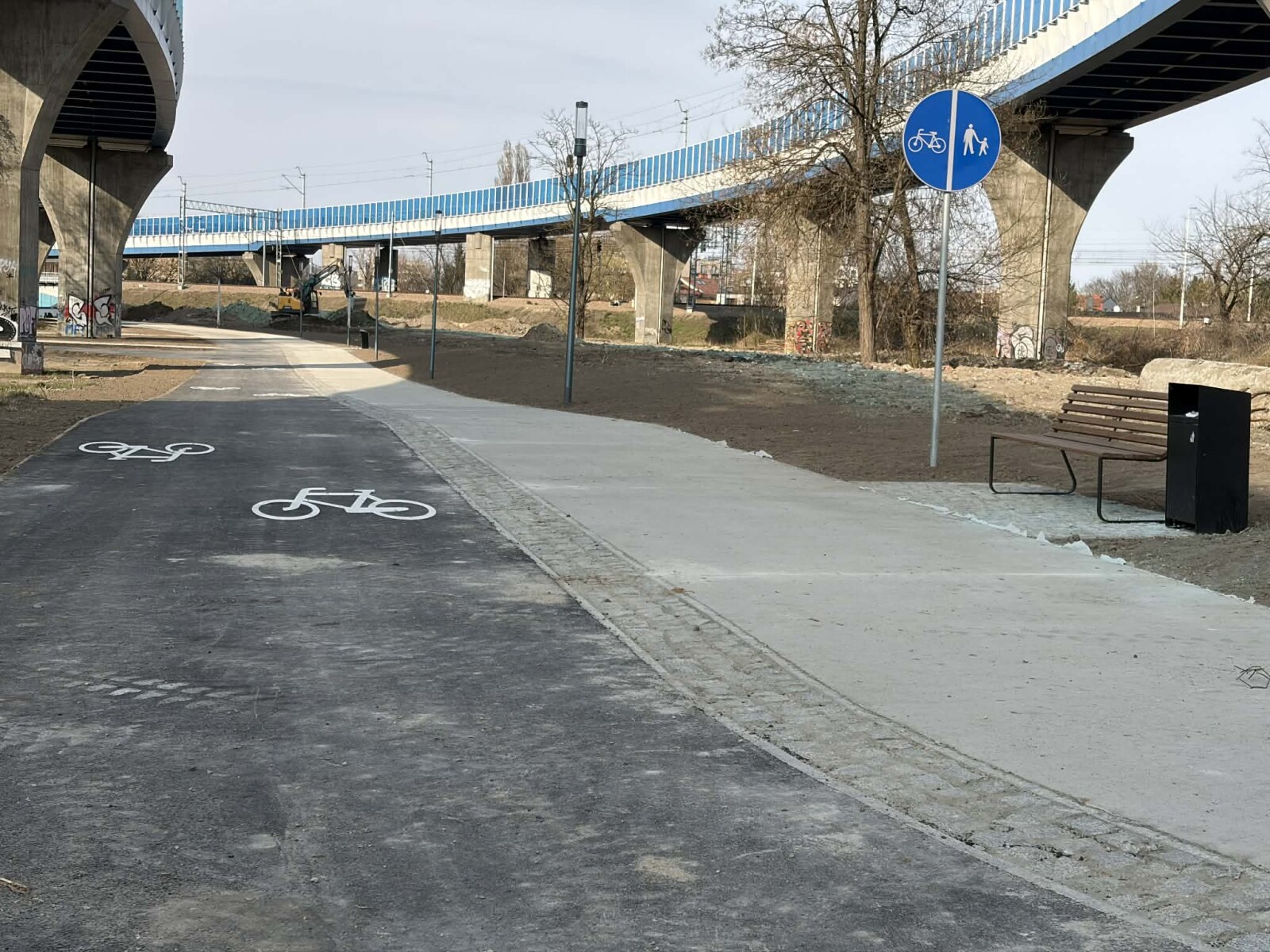 Dzięki temu wyraźnie widoczny jest już docelowy przebieg trasy, która wkrótce zapewni wygodne i bezpieczne połączenie dla pieszych i rowerzystów.